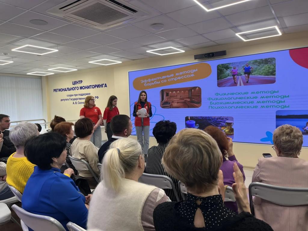 Много узнали нового, поделились своими способами борьбы со стрессом. Волонтеры - медики - студенты медицинского института НИУ БелГУ, провели дыхательную гимнастику, показали слайды, организовали флешмоб.