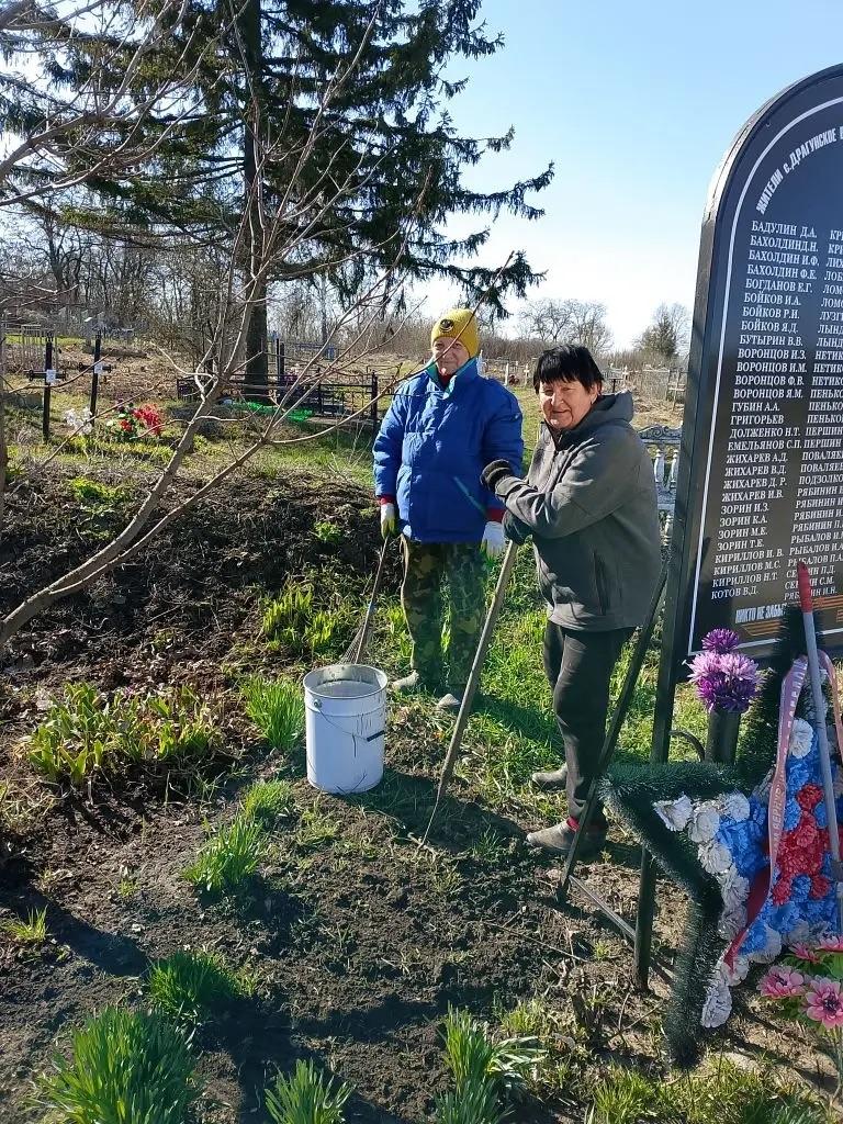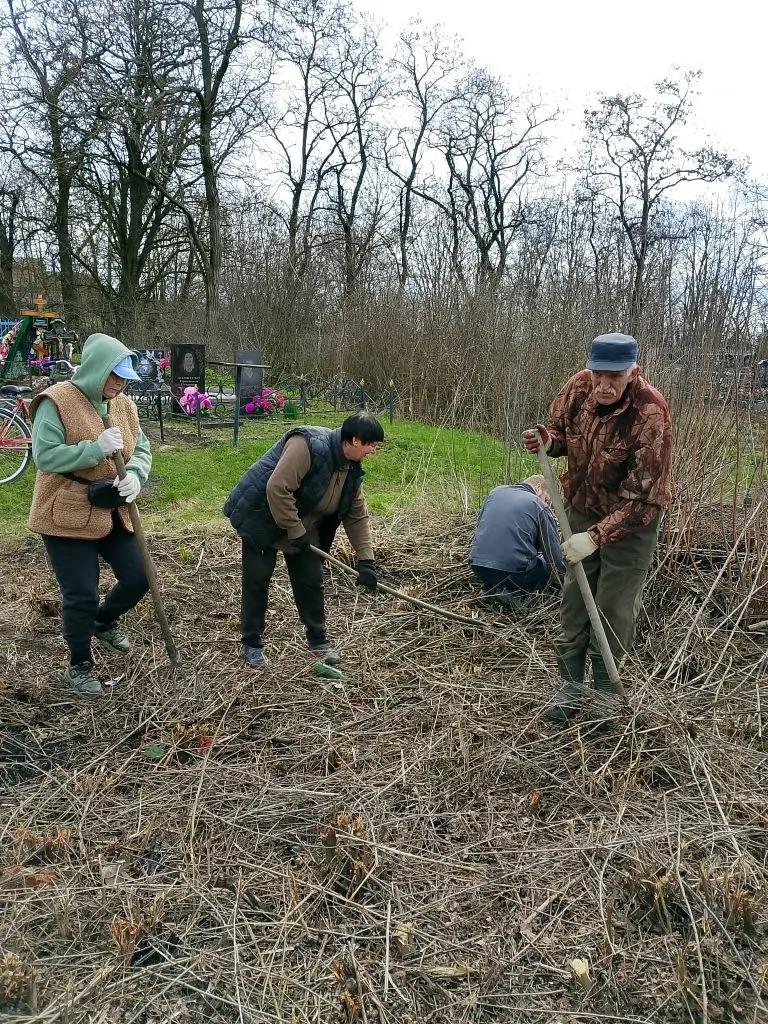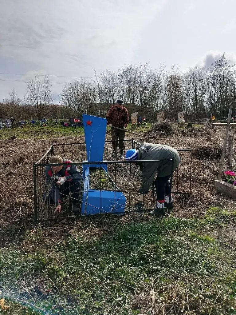 Дружная команда волонтеров пожилого возраста убрала территорию часовни, привела в порядок могилы участников Великой Отечественной войны на местном кладбище. Работали с удовольствием, сделали накануне светлого праздника Пасхи доброе дело.